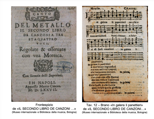 a divulgazione più esaustiva del personaggio e più attraente per il lettore. Come dicevo all’inizio, Grammatio Metallo ha scritto musica sacra, mostrandosi contrappuntista rigoroso, ed è stato ricordato in alcuni concerti per lo più attraverso i suoi componimenti sacri, ma mi piace segnalare che negli anni scorsi, anche recenti, è stato coinvolto in produzioni musicali di grande valore, in quanto anche compositore di canzoni e villanelle alla napoletana, infatti, nell’ambito di studi iniziati negli anni sessanta per il recupero e la riproposta del patrimonio musicale della tradizione popolare campana, da parte di un gruppo italiano di musicisti ben presto diventato famoso nel panorama musicale nazionale ed internazionale, perché unico nel suo genere – la N.C.C.P. – un brano scritto dal Metallo è presente in ben tre raccolte di successo di questo gruppo: Li sarracini adorano lu sole (1974) – Incanto acustico (1996) e 50 anni in buona compagnia (2016), previo riadattamento alle esigenze artistiche degli interpreti. Il brano risulta sempre presente comunque con “autore anonimo” oppure “brano tradizionale” perché evidentemente il documento rinvenuto in passato non riportava il nome dell’autore, ma, come si evince dalla copia dell’opera in mio possesso, trattasi dei versi della canzone “In galera li panettieri”, scritti dal Metallo nel 1577, presente ne Il SECONDO LIBRO DI CANZONI A TRE ET A QUATTRO VOCI – Regolate & osservate con una Moresca, alla tavola 12.