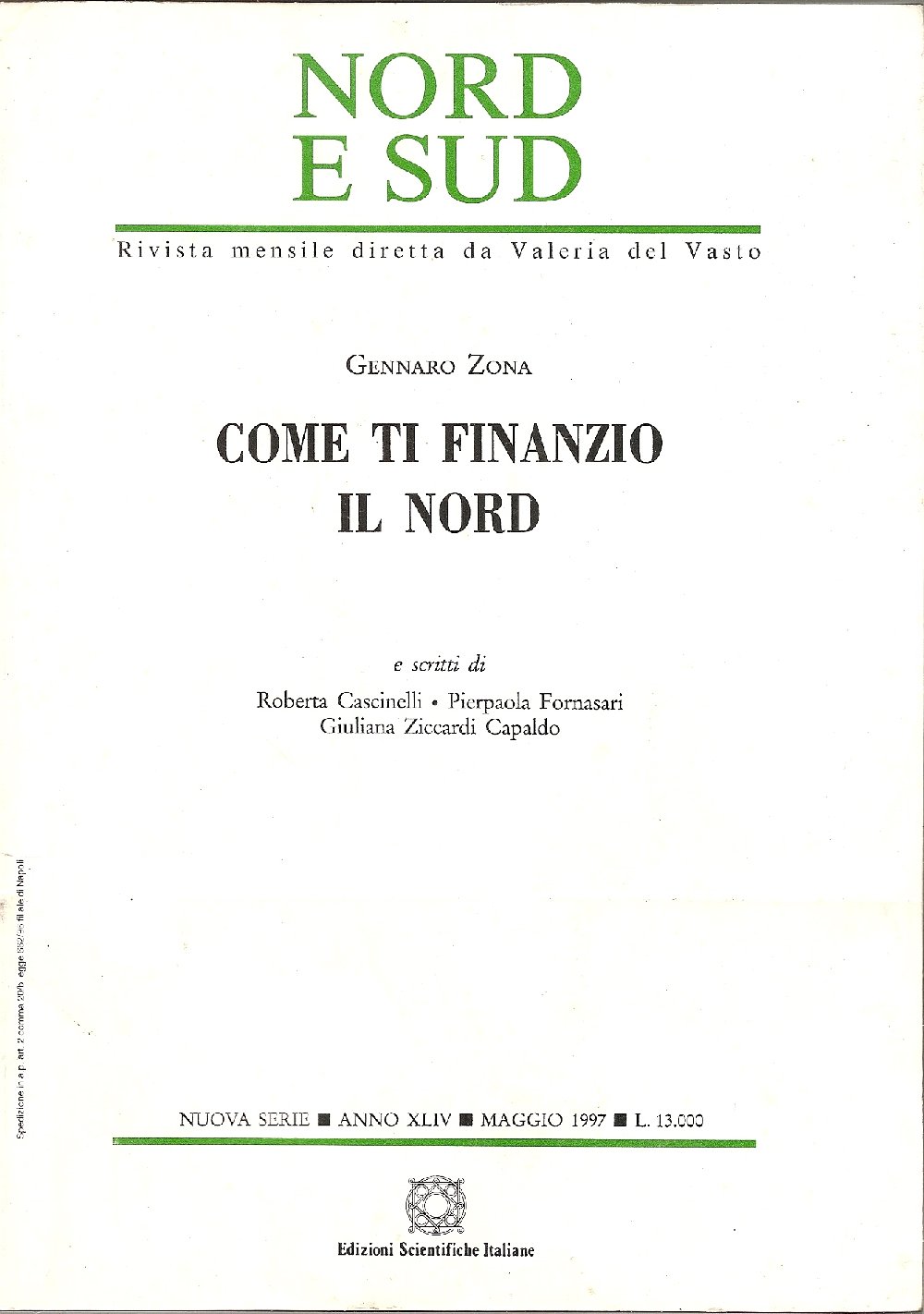 Questo suo sentimento profondo verso il Sud lo ha portato, nel 1997, alla realizzazione del saggio:” Come ti finanzio il Nord”, edito dalla Edizioni Scientifiche Italiane