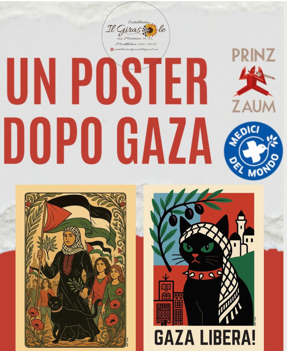 Con entusiasmo e profondo senso di responsabilità, la libreria «Il Girasole» di Maddaloni (CE) annuncia la sua adesione all’iniziativa solidale «Un poster dopo Gaza», un progetto nato dall’idea della Libreria Prinz Zaum di Bari. Questa campagna, che unisce arte, cultura e solidarietà, invita il pubblico ad acquistare un poster speciale i cui proventi saranno devoluti a Medici Nel Mondo per sostenere i progetti umanitari a Gaza e nelle aree colpite dal conflitto.