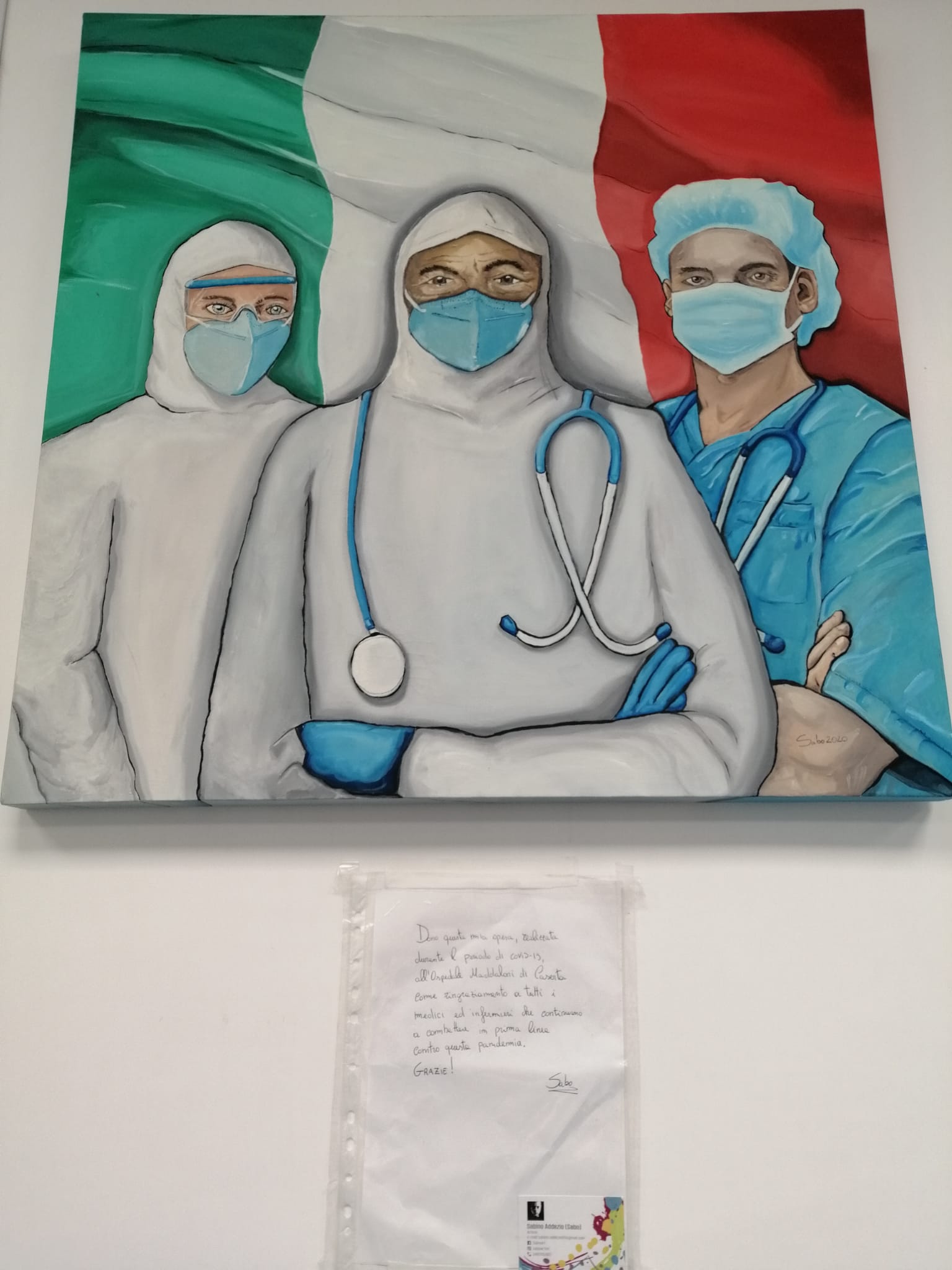 Il personale sanitario della medicina 4 di Maddaloni ringrazia l’artista con tutto il cuore per il regalo ricevuto: un gesto di grande sensibilità, che possa un giorno diventare testimonianza di un periodo storico superato e concluso in modo vincente.