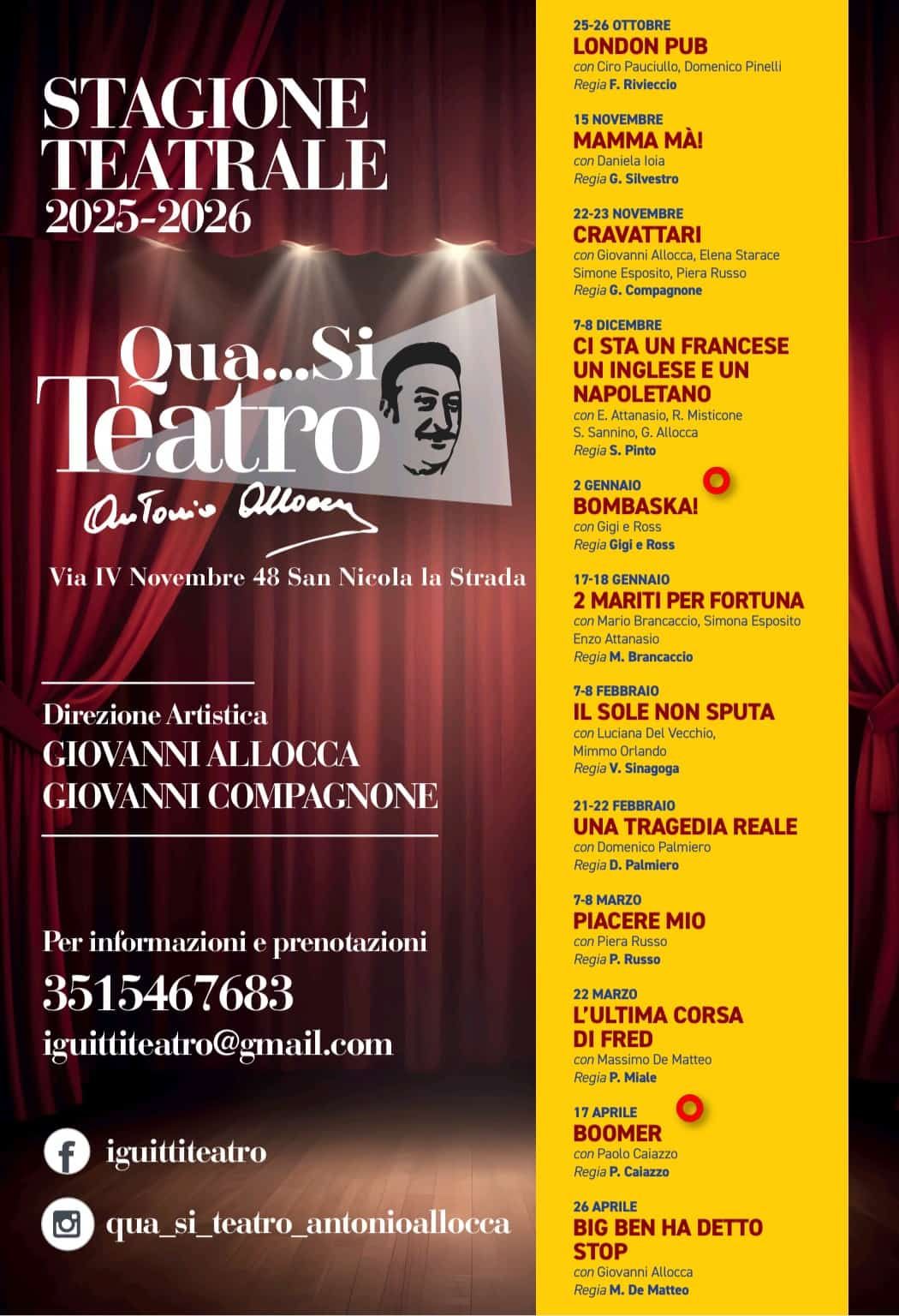 I saluti finali hanno dato appuntamento ai prossimi eventi, questa volta più leggeri: Giovanni Allocca tornerà sul palco il 7 e l’8 dicembre con Ci sta un francese, un inglese e un napoletano, spettacolo diretto da S. Pinto. A seguire, altri titoli di qualità arricchiranno il cartellone, confermando il Qua… Si Teatro come punto di riferimento per il buon teatro del territorio.