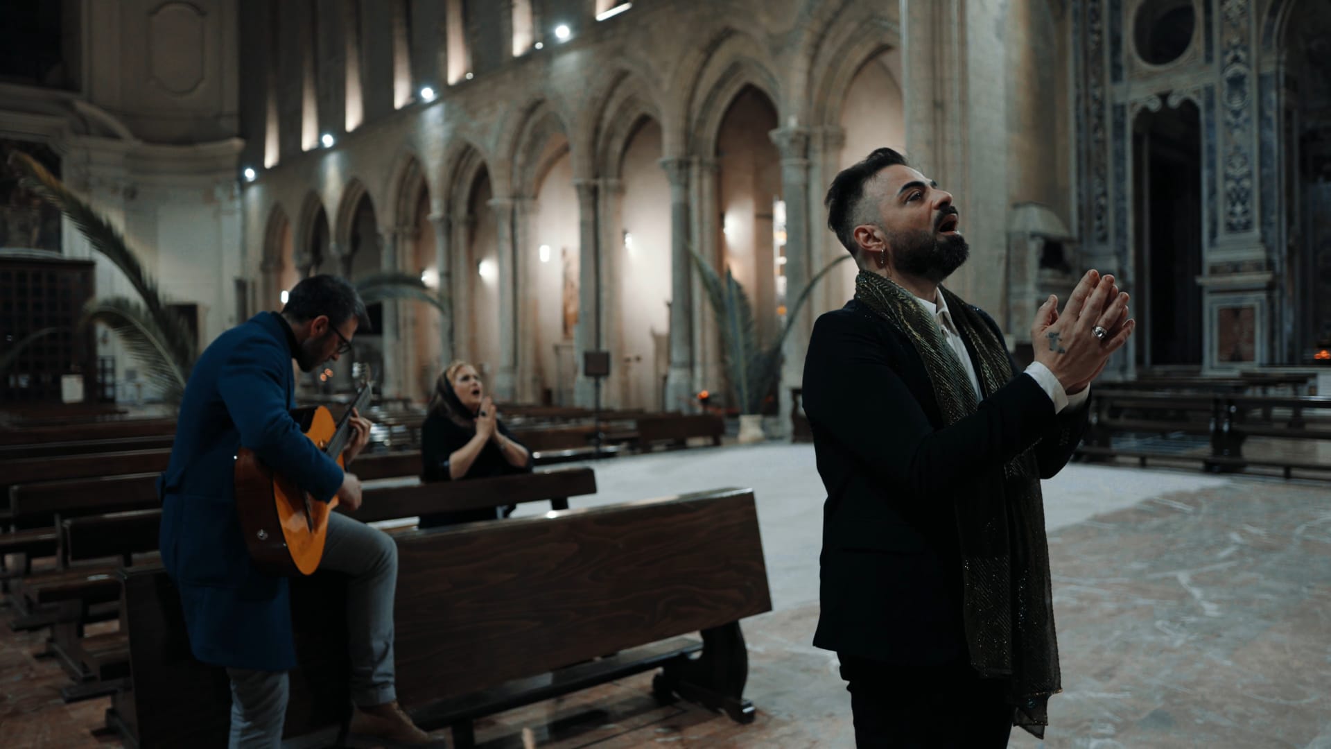 In tal modo, Pulcinella e l’Ave Maria si trovano nel punto dove i secoli si sovrappongono, dove il sacro antico e la fede moderna coincidono. La chiesa diventa una scenografia cosmica, teatro del dialogo tra la miseria dell’uomo e la grandezza divina. In chiave simbolica, il video suggerisce che anche la maschera può diventare volto, che dietro l’ironia dell’esistenza si nasconde un’invocazione autentica».