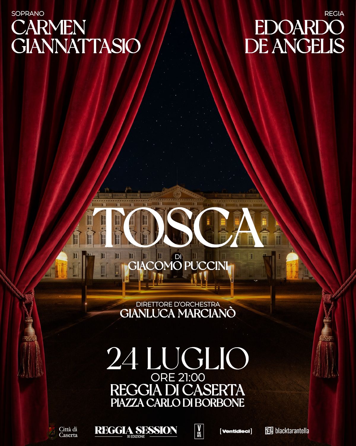 Rappresentata per la prima volta nel 1900, Tosca è una delle opere più celebri del repertorio lirico, capace di combinare passione, intrigo e tragedia. In questa occasione andrà in scena una versione rivisitata da Edoardo De Angelis, realizzata ad hoc per lo scenario della Reggia di Caserta. Questa produzione – nata dalla sinergia tra LWR, Ventidieci e Black Tarantella – rappresenta un appuntamento unico nel panorama culturale italiano: una sola data, in una location senza eguali, come la Reggia di Caserta, dove musica, arte e storia si incontrano per dar vita a un’esperienza immersiva di grande fascino e suggestione.