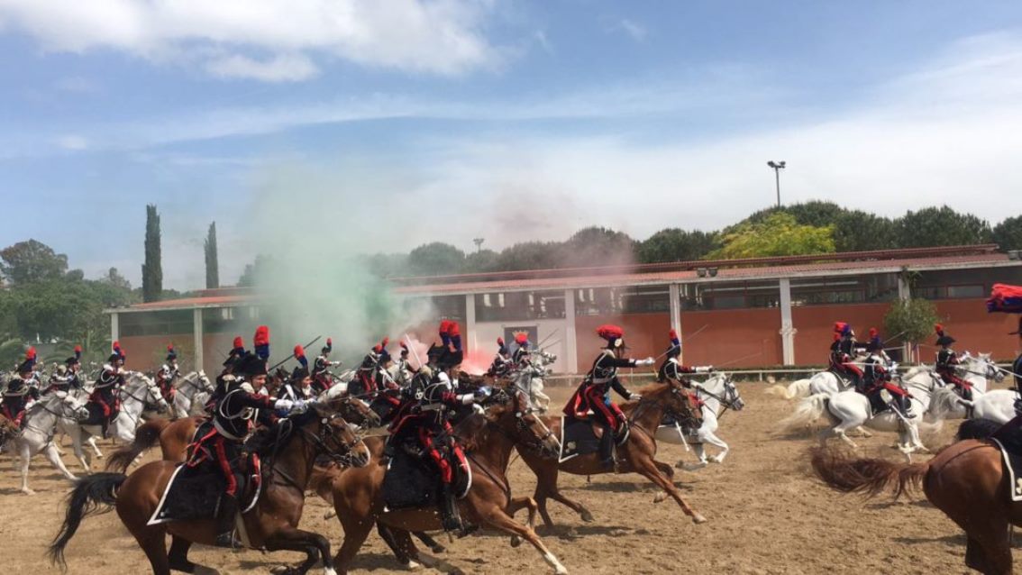 Quest’oggi un Drappello di Carabinieri a Cavallo si esibiranno in articolate formazioni di cavalleria, incroci, galoppate e figure, che termineranno con la celeberrima “carica di Pastrengo” in cui i Carabinieri, sciabole sguainate e con indosso le uniformi storiche dei Carabinieri dai colori blu turchino e rosso, partiranno alla carica al grido di “Pastrengo!”. Il 4° Reggimento Carabinieri a Cavallo è l’ultimo Reggimento interamente montato delle Forze Armate Italiane. Nel quadro della ristrutturazione ordinativa dei reparti mobili dell’Arma, il 1° aprile 1963 fu costituito il 4° Reggimento Carabinieri a Cavallo, inquadrato nella XI Brigata Carabinieri Meccanizzata ed articolato su Squadrone Comando, Squadrone Motoblindato, I Gruppo Squadroni “Pastrengo”, II Gruppo Squadroni “Allievi” e Centro Ippico.