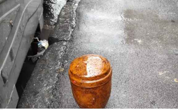 Urna funeraria abbandonata vicino ai cassonetti dei rifiuti