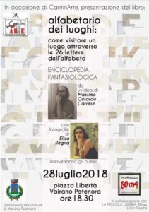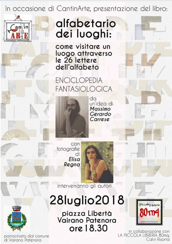 VAIRANO PATENORA – Sabato 28 luglio 2018,con inizio alle ore 18.30, la Città di Vairano Patenora apre l’edizione di “Cantinarte”, un percorso tra arte e gastronomia che valorizza il patrimonio monumentale e culturale della città, con un tour tra vicoli, palazzi storici e cantine. Ad aprire la manifestazione l’intervista dedicata all’enciclopedia fantasiologica “Alfabetario dei Luoghi”
