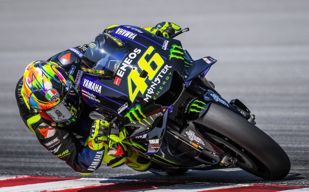 La stagione 2010 inizia con una vittoria in Qatar, davanti al compagno di team Jorge Lorenzo e ad Andrea Dovizioso (team ufficiale HRC), vittoria favorita anche dalla caduta di Stoner, che sino ad allora era al comando della gara. In Spagna si classifica terzo, mentre in Francia arriva secondo dopo essere partito dalla pole position. Tuttavia il 5 giugno, durante le prove del Gran Premio d’Italia presso il circuito del Mugello, Valentino cade a causa di un high side, riportando la frattura scomposta ed esposta di tibia e perone, infortunio per il quale subisce un intervento chirurgico presso il CTO di Firenze. Nonostante si prospettino lunghi tempi di recupero (la prognosi iniziale era di almeno due mesi), Rossi torna in sella alla moto, sebbene ancora claudicante e costretto all’utilizzo delle stampelle, a poco più di un mese dall’infortunio.[33][34], che non gli consente di prender parte a quattro Gran Premi, vinti da Pedrosa (Italia) e Lorenzo (Gran Bretagna, Olanda e Catalogna). Durante l’assenza è stato sostituito dal collaudatore giapponese Wataru Yoshikawa. Il ritorno alle competizioni avviene al Gran Premio di Germania, che si disputa il 18 luglio presso il circuito del Sachsenring, dopo aver ricevuto l’autorizzazione a correre da parte dei medici del circuito.