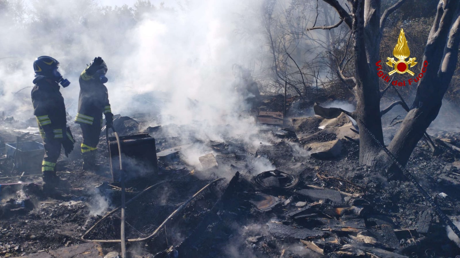 All’arrivo dei soccorsi, il campo nomade era già stato completamente evacuato, e non si registrano persone ferite.
