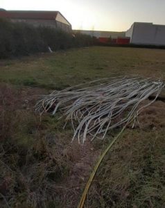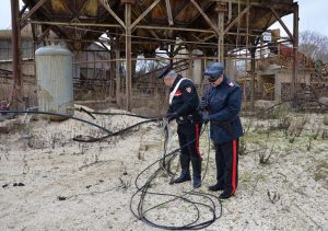 La celerità dell’operazione posta in essere delle pattuglie, permetteva di sventare il furto di di rame, pari a circa 50 quintali per un valore complessivo di circa 20.000 euro, che ignoti malfattori, dileguatisi nelle campagne circostanti all’arrivo dei militari e precedentemente allertati dal passaggio della Guardia Giurata, avevano sapientemente distaccato dall’impianto elettrico dei pannelli fotovoltaici installati sulla copertura del capannone della azienda.