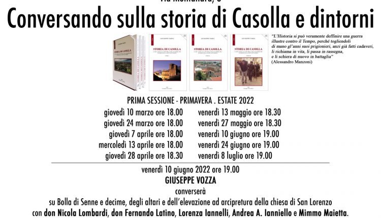 Venerdì 10 giugno con inizio alle ore 19.00 nell’Arciconfraternita di Maria SS. Addolorata di Casolla vi sarà l’ottavo appuntamento su “Conversando sulla storia di Casolla e dintorni”.
