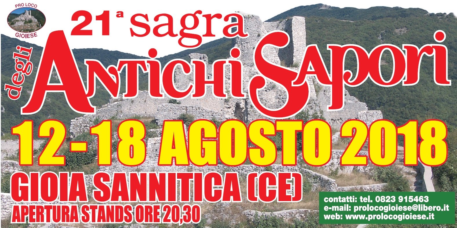 La sagra si svolgerà da domenica 12 agosto fino a sabato 28 agosto e non potranno non esimersi dal parteciparvi gli amanti della buona cucina provenienti dall’intera Campania che si riuniranno nella piazza Giovanni Paolo II e nelle aree adiacenti, come il teatro della sagra patrocinata dalla Provincia di Caserta, dall’Ente Parco del Matese, dal Comune di Gioia Sannitica, dall’Unpli, dall’Ept di Caserta, dalla Comunità Montana del Matese e dalla Regione Campania.