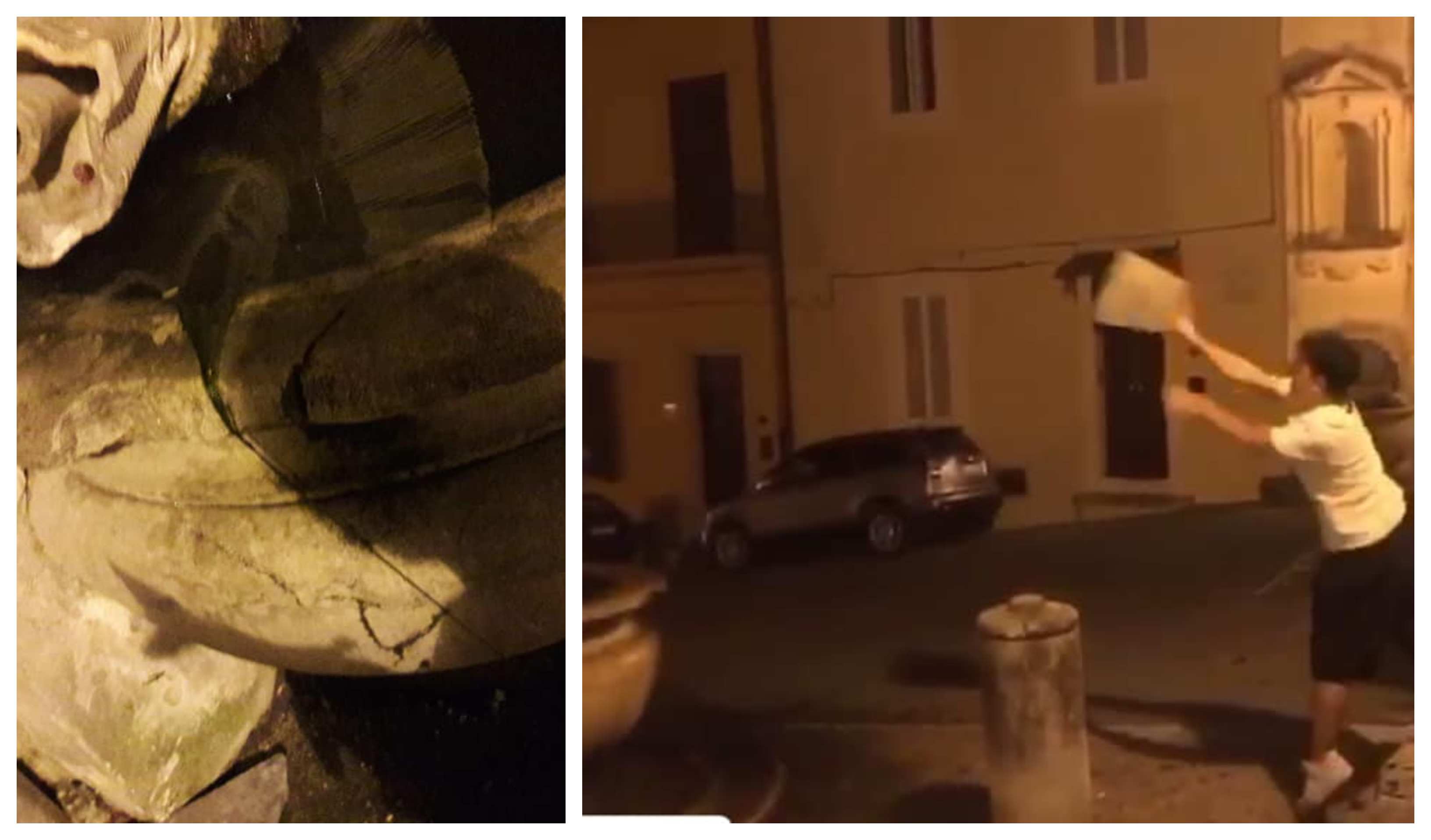 L’opera, realizzata da Angelo Solari e completata nel 1794, situata in via Planelli, è stata presa a sassate dal giovane mentre un amico lo riprendeva con il cellulare.