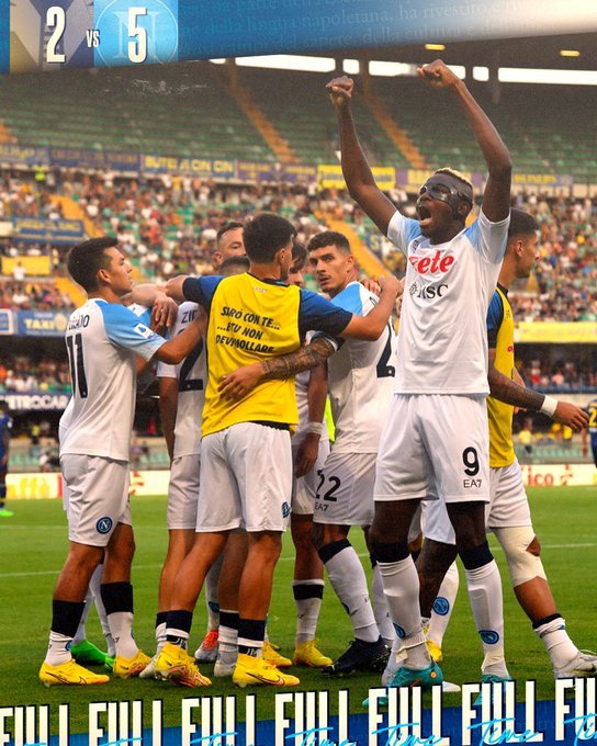 Marcatori: 29′ Lasagna, 37′ Kvaratskhelia, 45’+2 Osimhen, 48′ Henry, 55′ Zielinski, 65′ Lobotka, 79′ Politano