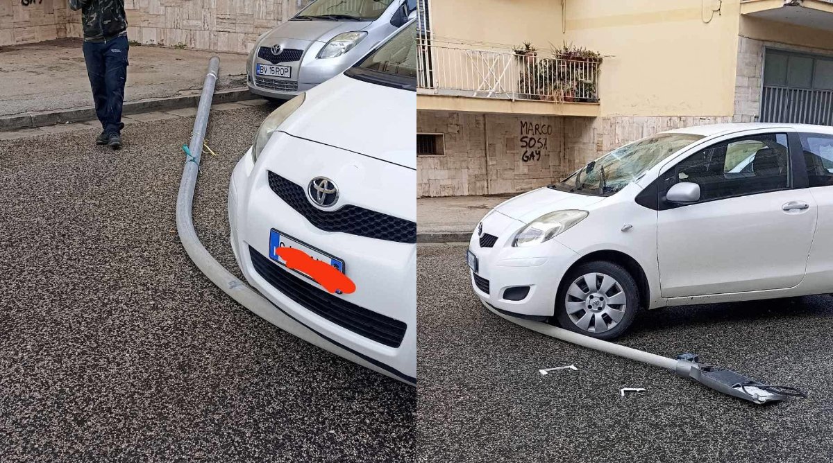 Dalle notizie in nostro possesso sembra non ci siano stati danni a persone ma solo qualche attimo di panico. Speriamo che l’ episodio accaduto funga da campanello d’ allarme per chi di competenza anche perchè a quell’ ora di solito finisce l’ orario scolastico e se quel palo , invece dell’ auto , avesse colpito un ragazzo che stava uscendo da scuola oggi probabilmente staremmo scrivendo di ben più’ gravi e serie conseguenze.