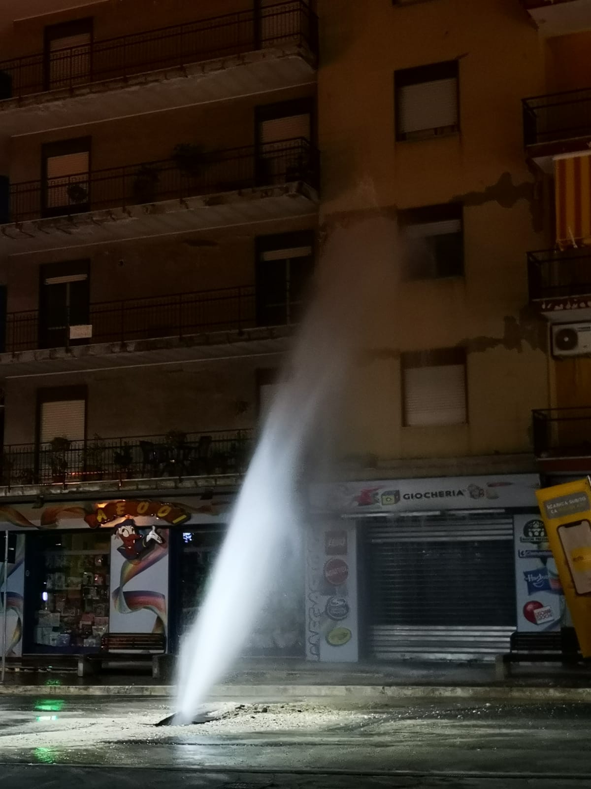 Maddaloni. Uno spettacolo che ha dell’incredibile quello a cui hanno assistito i maddalonesi che questa mattina alle 5 sono stati svegliati dall’altissimo getto d’acqua esploso dalle tubature di via Libertà e che ha raggiunto il terzo piano dei palazzi. Purtroppo non è petrolio ma solo acqua e nemmeno termale o miracoloso. Altra tubatura da riparare in città semplicemente.