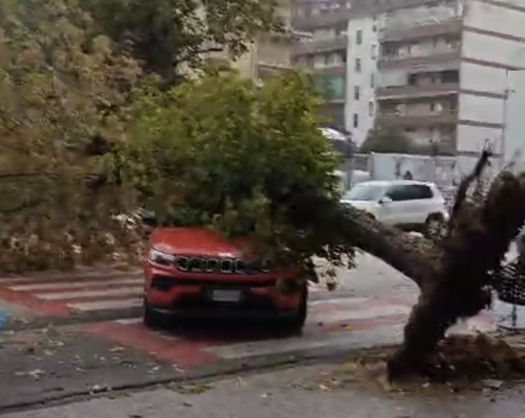 Caserta. Momenti di paura in Via G.M Bosco , altezza Ovviesse. Un albero di grosse dimensioni , molto probabilmente per causa maltempo è’ sbattuto violentemente su un automobile ivi parcheggiata.
