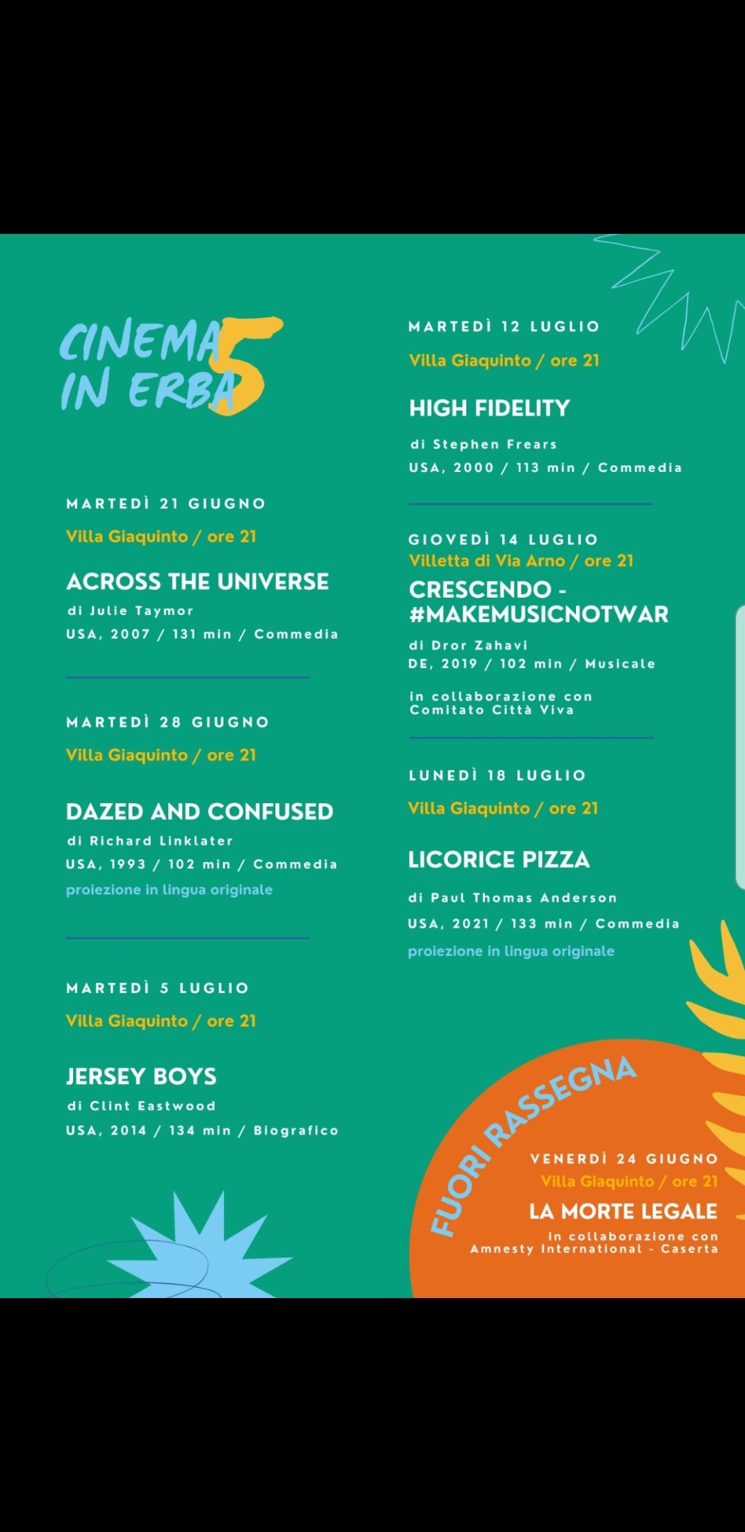 Chiusura lunedì 18 luglio con Licorice Pizza (Paul Thomas Anderson) , di nuovo in Villa Giaquinto, in lingua originale.