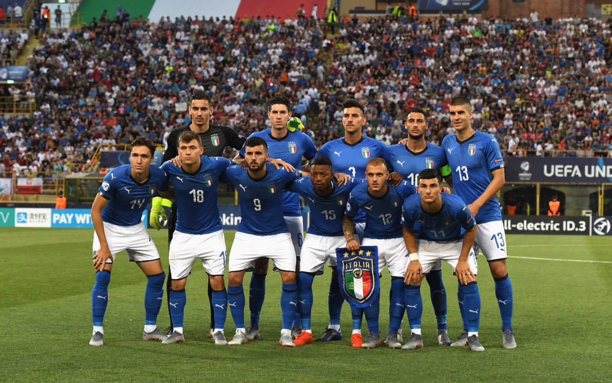 ITALIA (4-3-1-2): Meret; Calabesi, Mancini, Bastoni, Pezzella; Barella, Mandragora, Locatelli; Pellegrini; Cutrone, Chiesa. A disposizione: Audero, Montipò, Bonifazi, Tonali, Orsolini, Dimarco, Adjapong, Bonazzoli, Romagna, Kean, Murgia. Allenatore: Di Biagio. BELGIO (4-4-2): De Wolf; Cools, Bushiri, Bastien; Bornauw; Schrijvers, Heynen, Omeonga, cobbaut; Saelamaekers, Lukebakio. A disposizione: Jackers, Teunckens, De Norre, Mbenza, Iseka, De Sart, Vershaeren, Schrijvers, Amuzu, Wouters, Mangala. Allenatore: Walem.