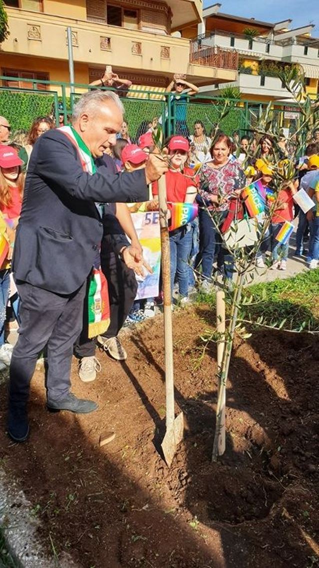 La manifestazione è culminata con la piantumazione del 2° Albero della Pace, il monumento vivo sempreverde simbolo della mobilitazione della Fiaccola della Pace e simbolo della vita che mai muore, dedicato alla memoria di “tutti i caduti e alle vittime delle guerre, stragi, attentati, terrorismo, criminalità, violenze e mafie, di Vitulazio e nel mondo”, dai 100 anni ad oggi, piantato nell’aiuola antistante il plesso della primaria, e la cerimonia di collocazione della targa di dedica dove viene riportata tutta la dicitura.