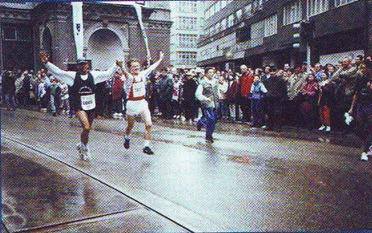 Alle ore 10.00 in punto, come in tutte le città coinvolte, partì Vivicittà: un unico orario, un solo battito, come il battito d’ali di una colomba della pace. Alla partenza c’erano circa 2000 persone: bambini, anziani, ragazzi, soldati delle forze di pace e tanti atleti amatori italiani. Tutti indossavano una maglia che parlava chiaro: libertà e pace. Fin dai primi chilometri prese il largo un giovane atleta bosniaco, Mahamic. La sua non era una fuga qualunque: voleva vincere non per sé, ma per Sarajevo, per ringraziare le forze di pace, per onorare i caduti e dimostrare al mondo che quella città voleva tornare a vivere. La fatica, però, presentò il conto. Al decimo chilometro, Mahamic venne raggiunto da Alessio Faustini. I loro sguardi si incrociarono: in quell’istante, senza parole, si capì tutto. Faustini comprese che quella vittoria non doveva essere sua. Corsero insieme, spalla a spalla, tra due ali di folla commossa. Negli ultimi 200 metri, Alessio Faustini compì un gesto che ancora oggi rappresenta l’anima più vera del Vivicittà: prese la mano di Mahamic, la sollevò verso il cielo e poi la lasciò, dicendogli semplicemente: «Vai, amico bosniaco. Questa vittoria è tua». Due atleti arrivarono così, mano nella mano, braccia alzate, trasformando una gara di corsa in una lezione di umanità.