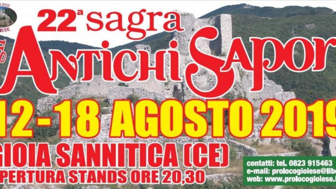 GIOIA SANNITICA (CE) – Gran finale stasera, domenica 18 agosto 2019, per la Sagra degli Antichi Sapori, la rinomata kermesse enogastronomica, che si svolge a Gioia Sannitica, giunta alla 22esima edizione che ha già registrato sin qui diverse migliaia di presenze. Una settimana vissuta all’insegna del gusto quella che terminerà questa sera grazie all’impegno dei tanti soci e volontari della Pro Loco Gioiese che hanno saputo mettere tanti ingredienti per l’annuale vetrina dei prodotti tipici matesini, tra nuove pietanze del territorio, aziende che hanno concorso con i loro prodotti e la passione delle decine tra uomini e donne che hanno contribuito a rendere grande un evento di respiro regionale, capace di animare il lungo week-end di Ferragosto nel Matese e di deliziare i palati più esigenti di migliaia di visitatori, riversatisi nella comunità al confine con il vicino Sannio per gustare le pietanze locali preparate dalle massaie rigorosamente secondo ricette e usanze di un tempo.