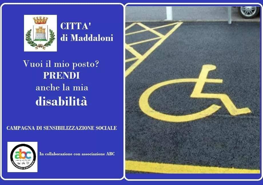 – installazione su dei pali adiacenti alla segnaletica contraddistinta da strisce gialle, riservata ai diversamente abili, il seguente messaggio : ” VUOI IL MIO POSTO? PRENDI ANCHE LA MIA DISABILITÀ”.