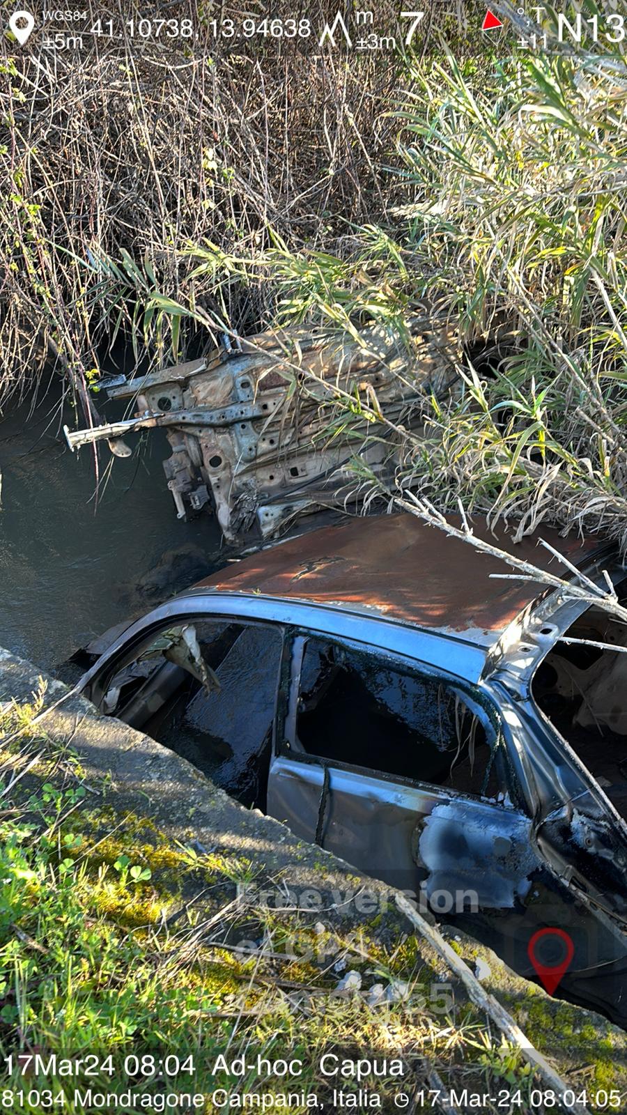 Mondragone, Le guardie giurate WWF Italia, in servizio presso il Nucleo di Vigilanza WWF di Caserta, addette alla vigilanza venatoria, ambientale e zoofila, nella mattinata di domenica 17 marzo 2024, hanno trovato un vero e proprio cimitero di carcasse di auto ed altri rifiuti speciali  abbandonati illegalmente in un affluente del fiume Savone nel territorio del comune di Mondragone (Caserta). In questa zona le Guardie del WWF hanno constatato la presenza di molteplici siti di abbandono rifiuti e contestualmente hanno inviato diverse segnalazioni, tramite PEC agli enti preposti.