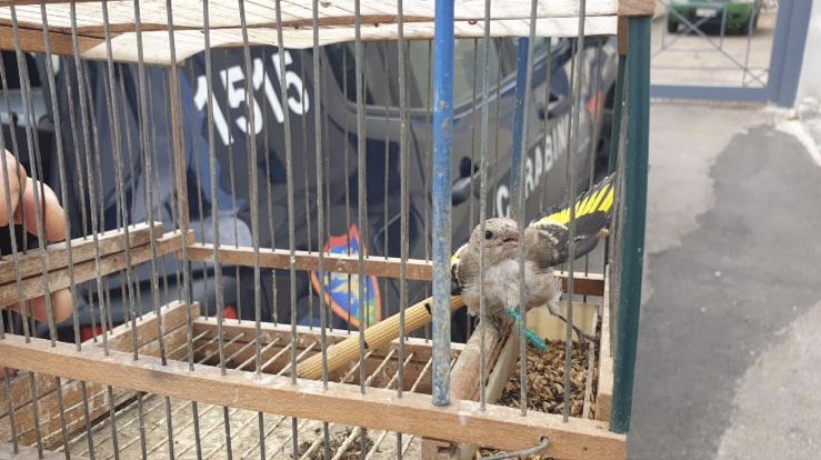 Sono stati sequestrati numerosi esemplari di avifauna selvatica particolarmente protetta (In particolare cardellini) detenuti in una piccola voliera sul balcone dell’abitazione, una gabbia trappola e altro materiale che serve per la cattura di uccelli, che il denunciato aveva nella sua auto.