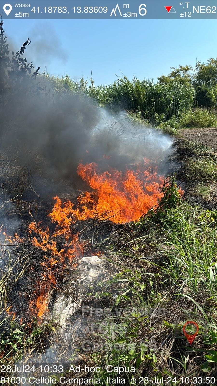 Cellole (nei pressi del depuratore) – Durante il servizio odierno, le guardie del WWF del nucleo provinciale di Caserta hanno avvistato da lontano una grande colonna di fumo nero. Dopo essersi avvicinati con notevole sforzo-ha dichiarato Alessandro Gatto- hanno scoperto un enorme falò composto principalmente da materiale plastico, proveniente soprattutto da attività agricole e altre fonti non identificate.