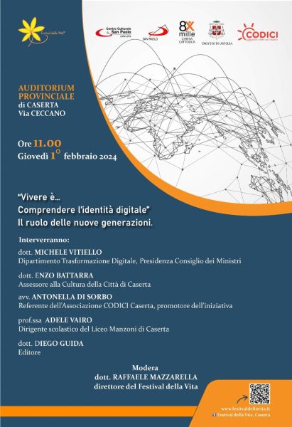 Tra i prossimi appuntamenti per riscoprire insieme tutte le declinazioni del verbo “ Vivere”, si segnala l’evento “Vivere è… Comprendere l’identità digitale – Il ruolo delle nuove generazioni”.