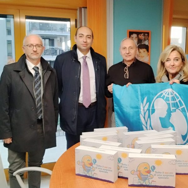 La campagna dell’UNICEF, ideata dai giovani volontari YOUNICEF, a Caserta ha registrato il forte impegno di Confindustria Caserta, del Presidente dott. Beniamino Schiavone e del Direttore Generale Lorenzo Chiello che, per ora , insieme alla Presidente Unicef di Caserta hanno portato i pacchi dono ai piccoli della Fondazione Ferraro di Maddaloni.